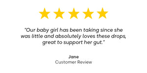 Inside each bottle, a small desiccant strip absorbs excess moisture to help keep the friendly bacteria viable and active. This means there’s no need for refrigeration, and you can feel reassured knowing your baby is receiving reliable support and full viability with every drop!